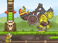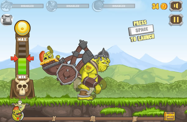 Schieße die grünen Kobolde mit dem Katapult so weit wie möglich. Auf dem Flug kannst du Goldmünzen einsammeln und diese dann zur Verbesserung des Katapults und deiner Ausrüstung nutzen. Wie weit können die Kobolde fliegen? Probiers einfach aus.